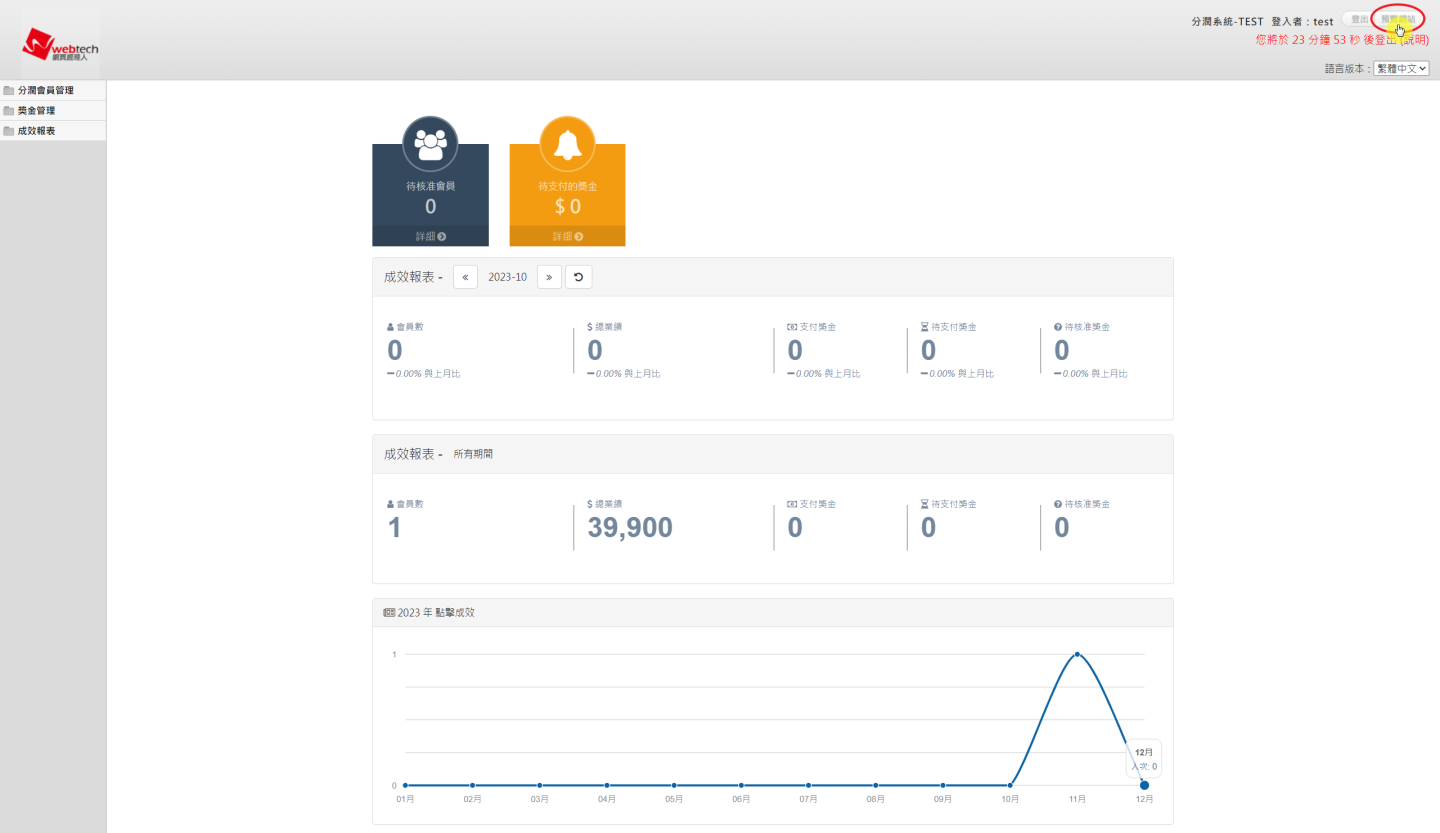 A. 儀錶板(含個人推廣網址、成交數量、獎金數據、點擊成效圖表)