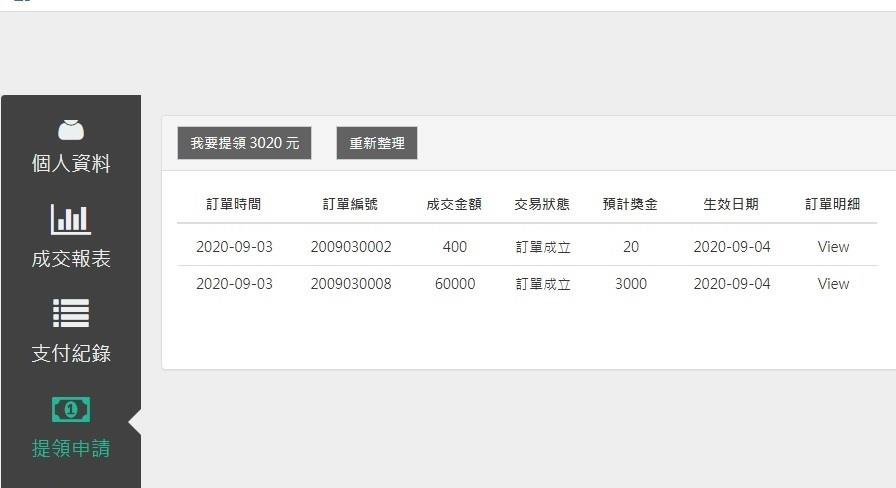 STEP 5:推廣會員(經銷夥伴)可以查看您過往成交獎金被支付的記錄。