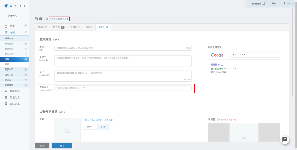 小知識補充: 標準網址(Canonical Link)最主要的目的是處理重複性的網頁內容,主要為告訴搜尋結果,當某個頁面產生很多不同參數網址時,要以哪一個網址為主,透過標準網址功能去設定,以利於網站SEO的提升! ※ 更多資訊請參考Google官方說明 |