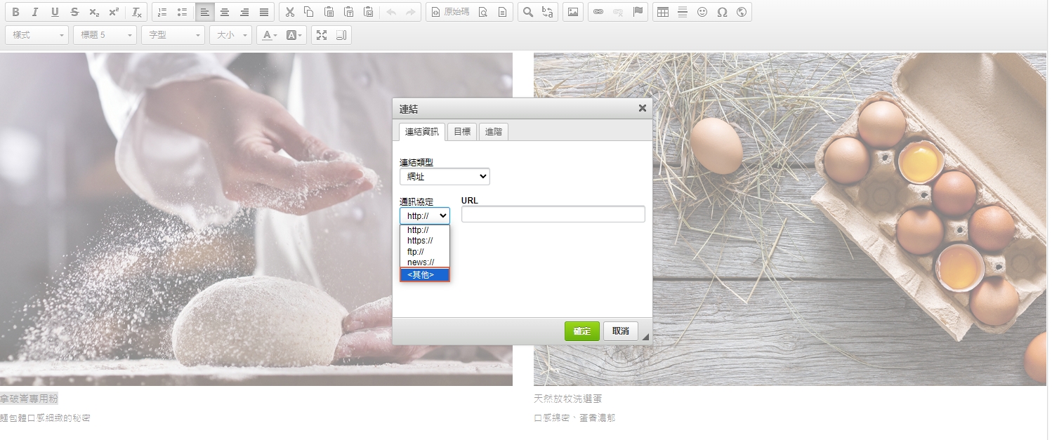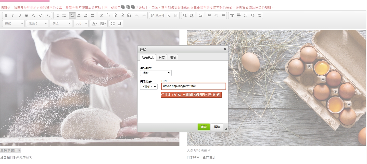 有些模組已經建好設定連結的欄位,請直接將目標網址貼上即可。
