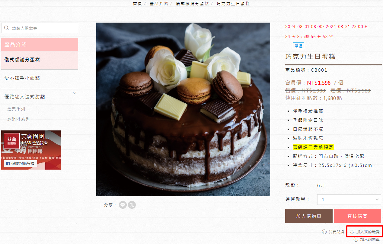▶ 會員在瀏覽商品時,將有興趣的商品「加入我的最愛」