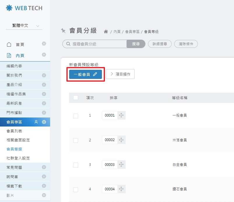 點選「內頁」>「會員專區」>「會員等級」>「新增會員分級」