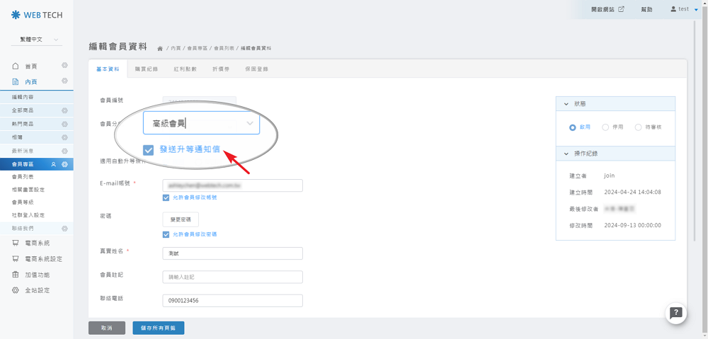 以往,會員透過消費積分、累積消費金額或其他條件達到不同的會員等級時,系統會自動發送通知信,告知會員等級變更的資訊!但如果是透過管理員由後台手動調整「會員等級」時,系統就無法自動發送通知信,需要由管理員另行通知! |