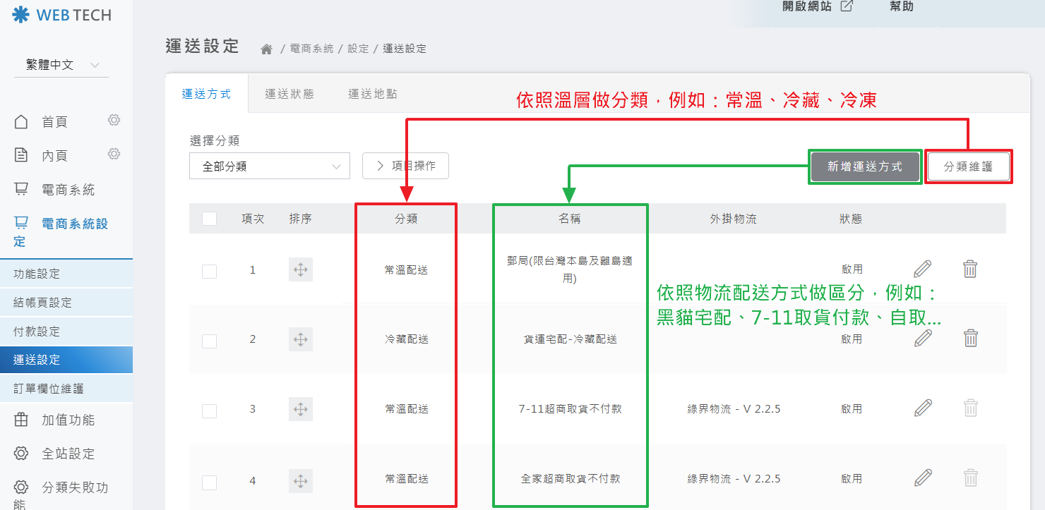 ✅ 分類維護 ✅ 運送方式