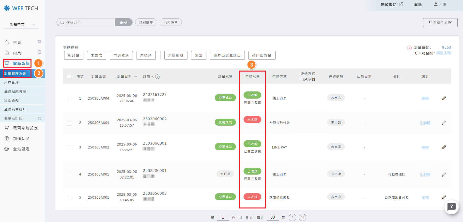 後台操作路徑: 電商系統 > 訂單管理系統 > 訂單付款狀態管理