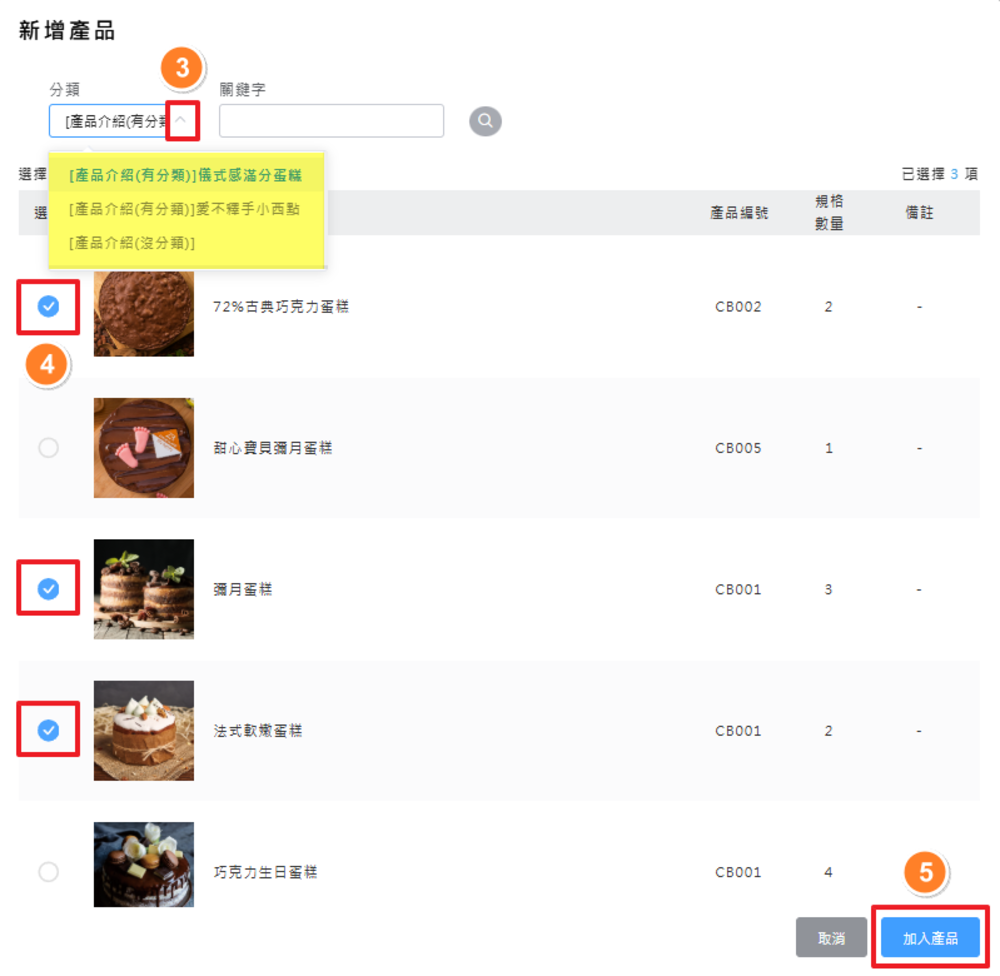 過去店家想要進行產品組合優惠活動時,只能設定「指定分類」中的全部商品,讓活動規劃增添許多限制,同時無法靈活操作。 備註: