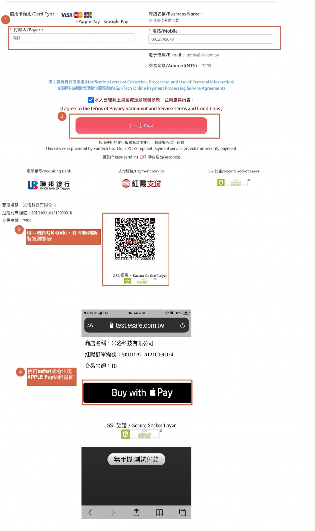 | 紅陽科技 | a. 線上刷卡 (一次/分期) b. Apple Pay / Google Pay c. 銀聯卡 d.條碼繳款 (24pay) / 代碼繳費 (paycode) e. Web ATM |
