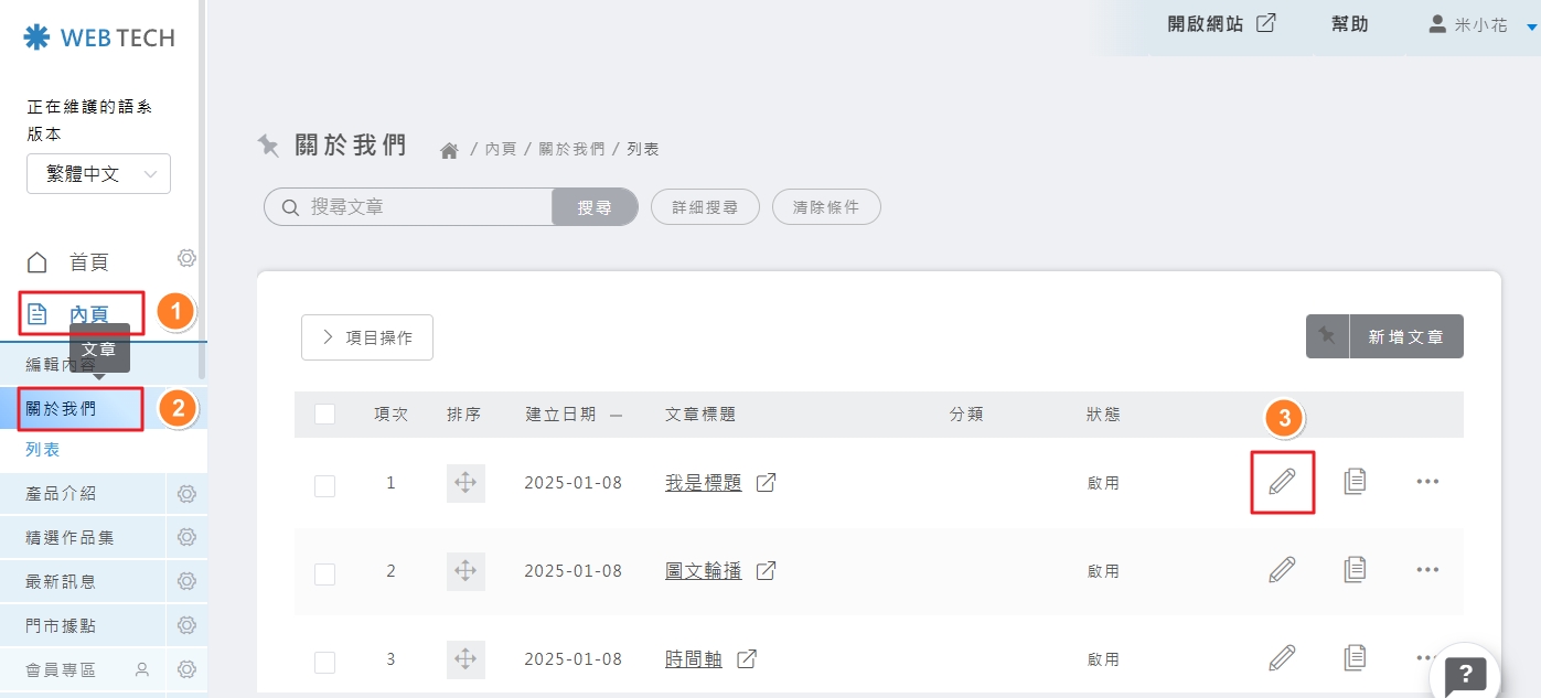 🚀 操作路徑: 內頁 ❯ 文章選單 ❯ 欲修改的文章 ❯ 點選編輯 (鉛筆圖示)