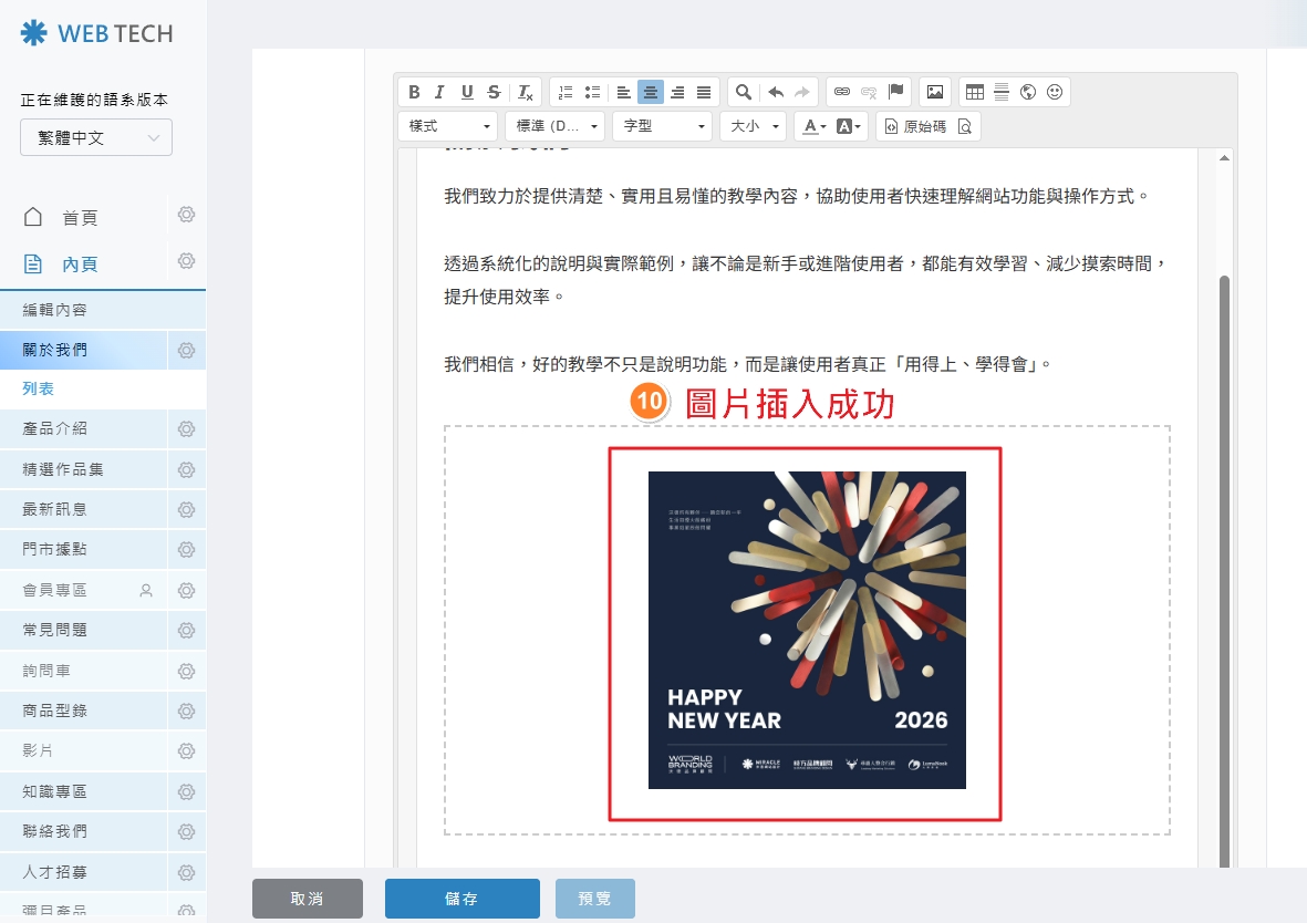 本篇教學文章將指導您如何在內容區塊中插入圖片、設定超連結,以及正確刪除圖片的標準流程。
