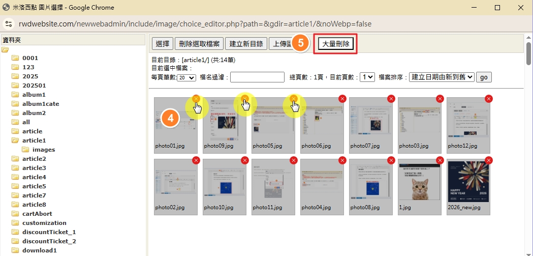 大量刪除 刪除資料庫圖片