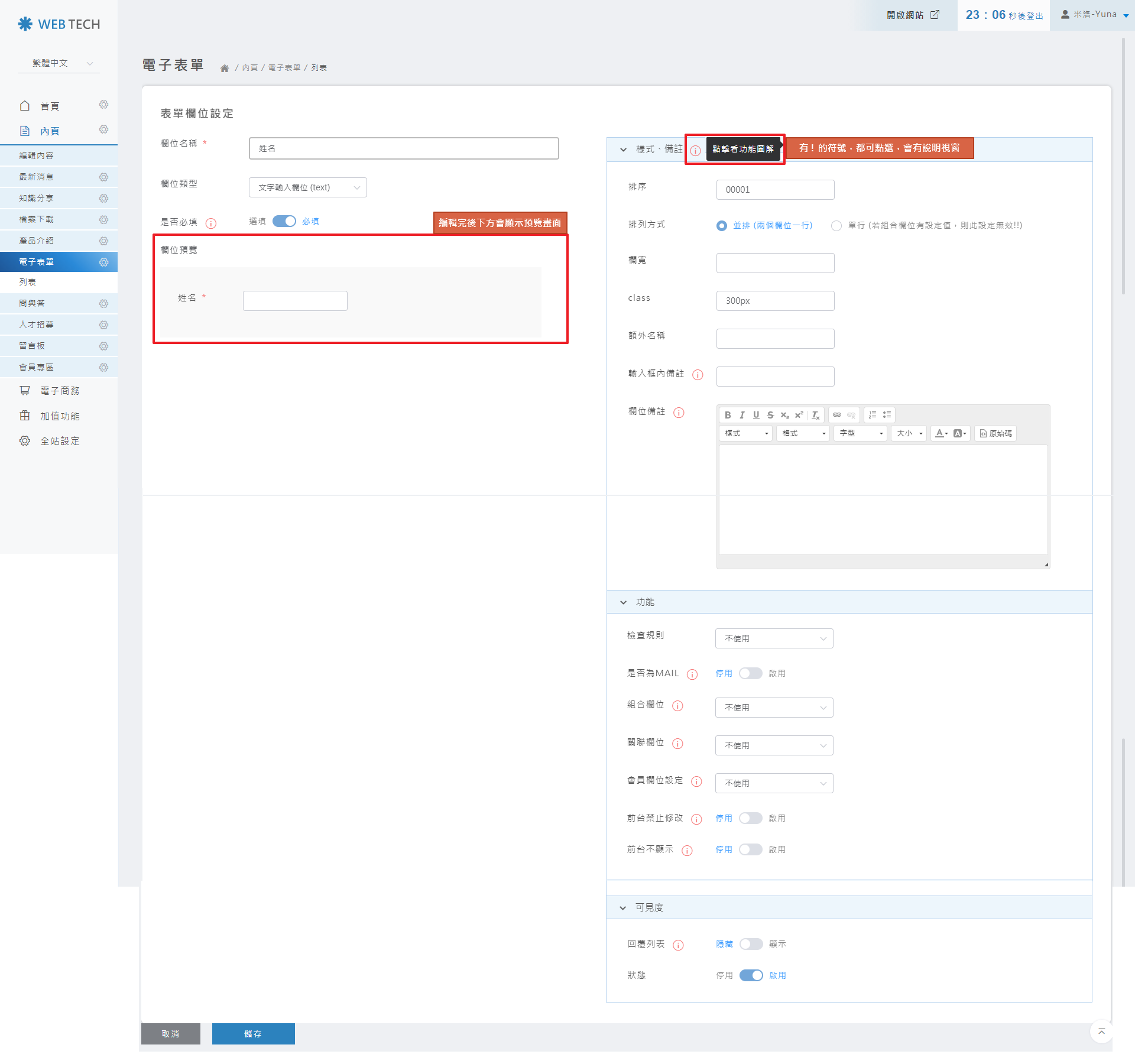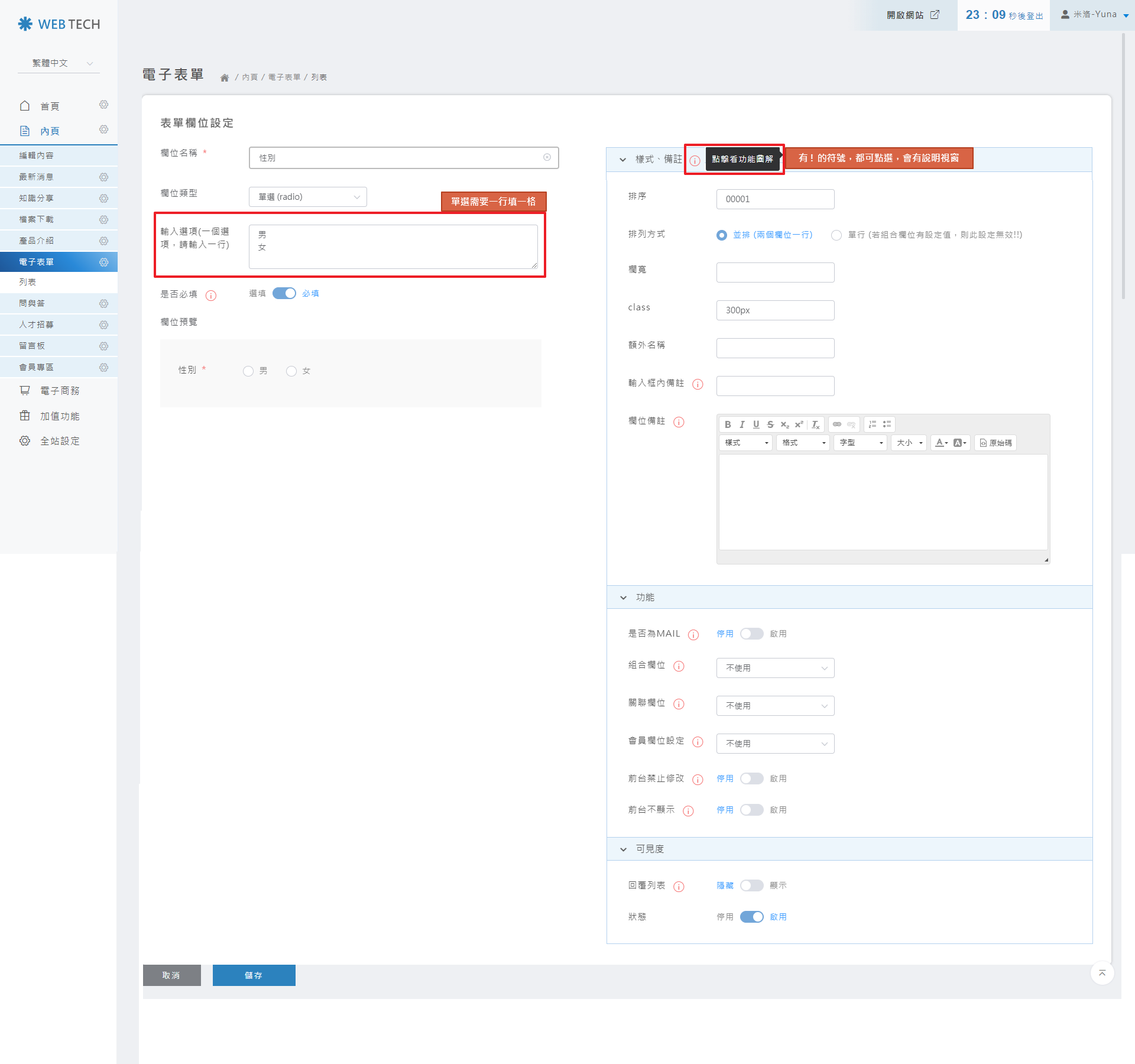 2.如何設定電子表單欄位