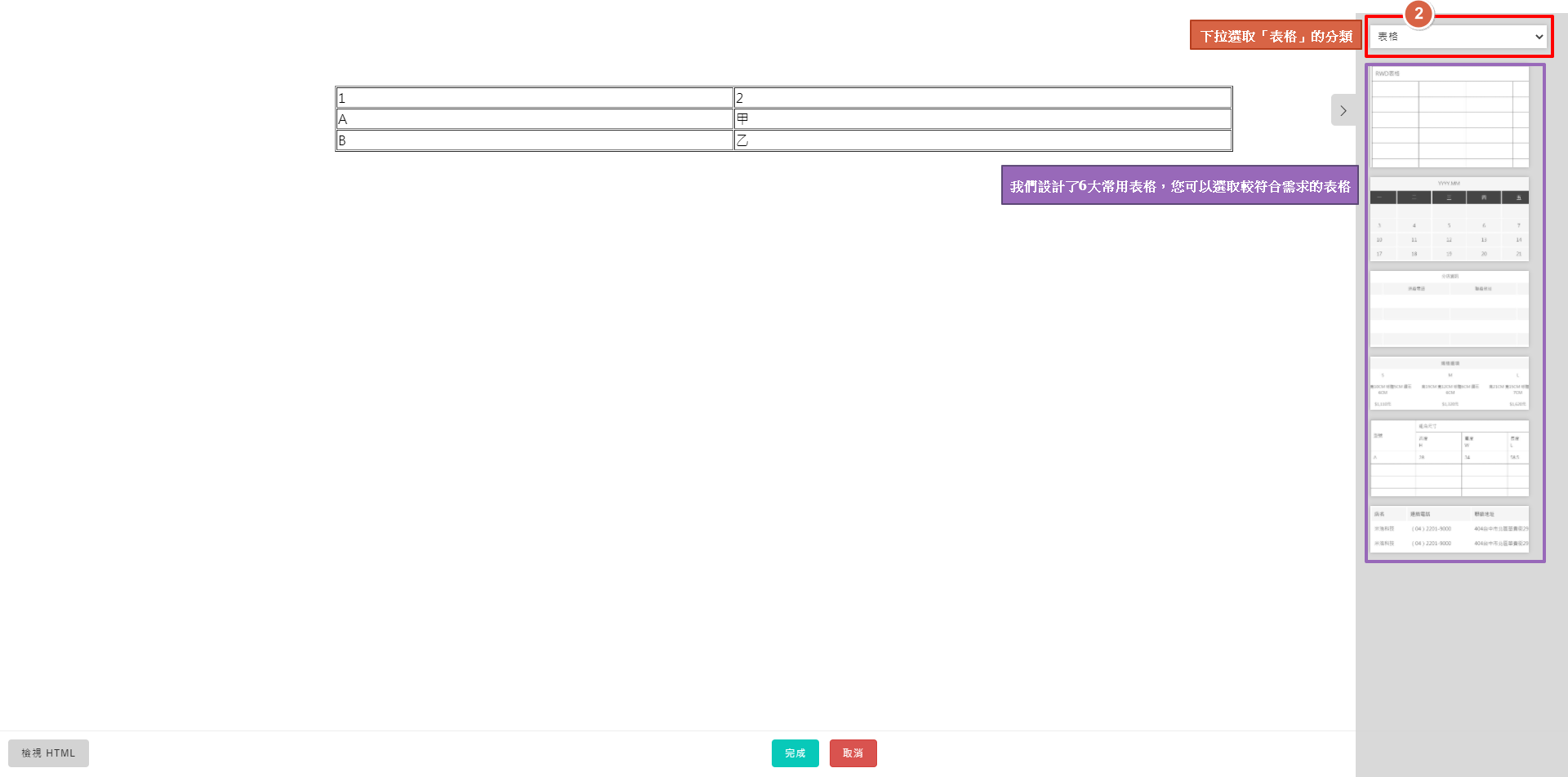 將符合需求的表格拖曳到左邊的灰色編輯區塊。