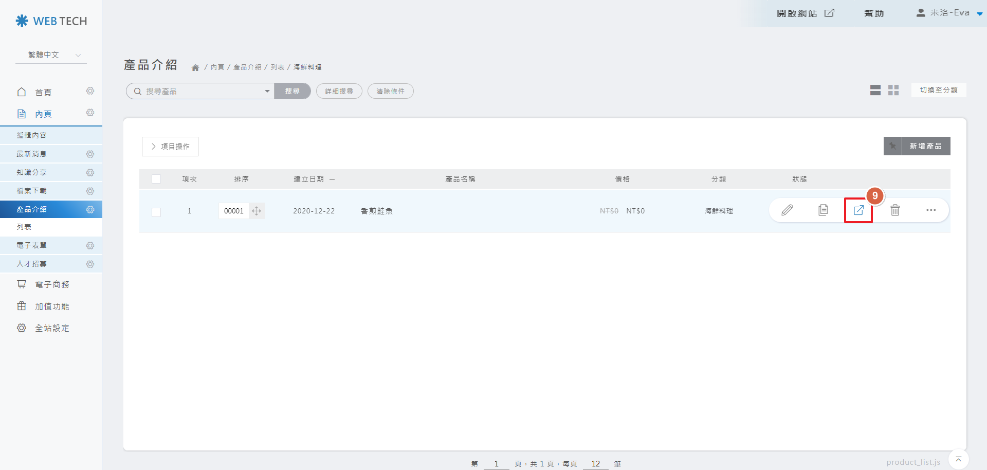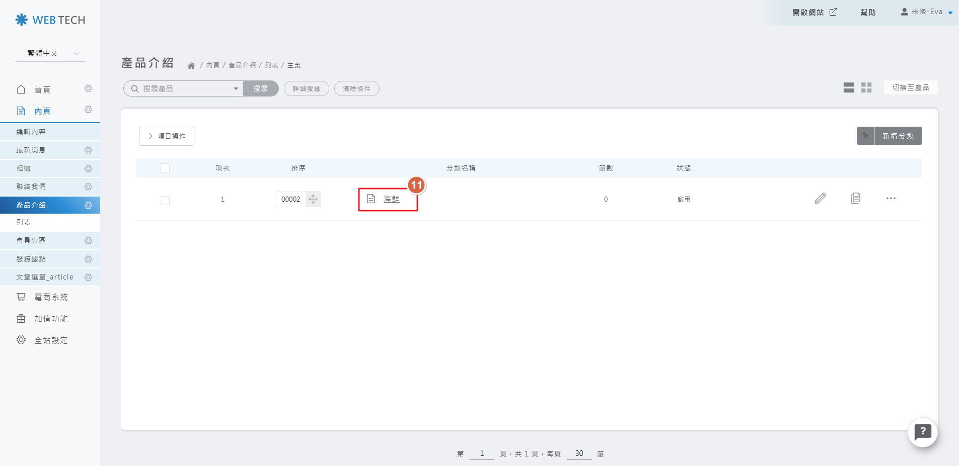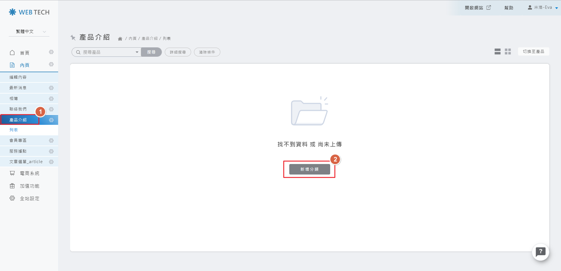 請點擊新增產品的按鈕,即可新增內容