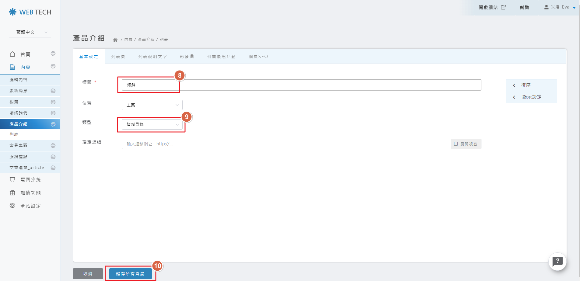 請輸入產品名稱、上傳產品圖片等作業,存檔即可完成新增產品囉!!