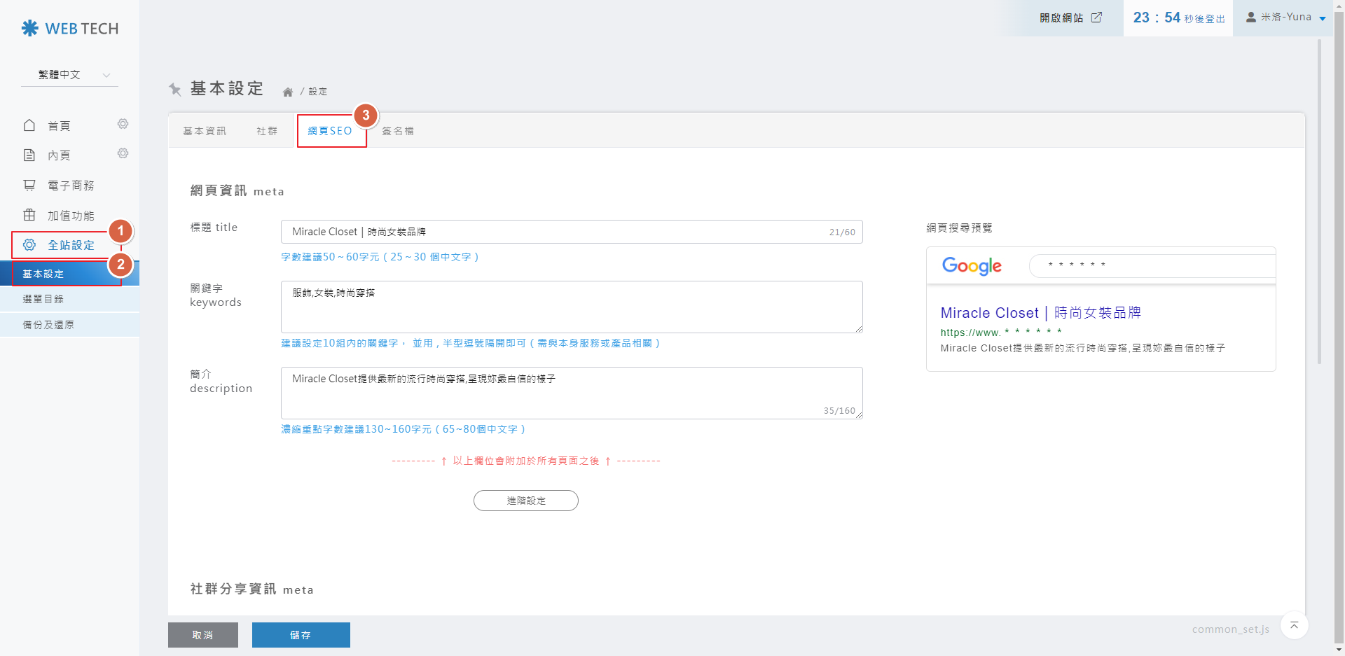 我司後台有規劃自行設定關鍵字的欄位,如下圖