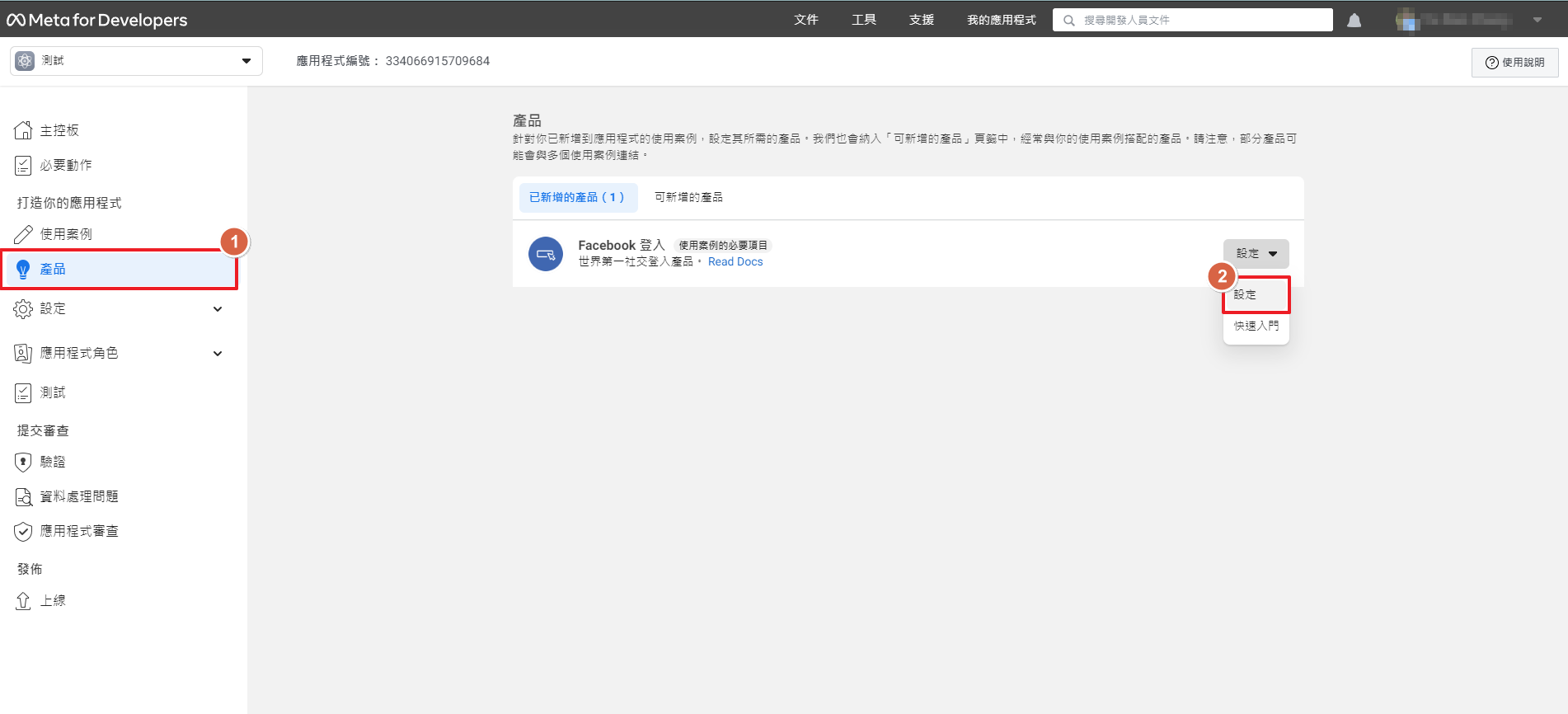STEP 5 :找到「Facebook登入」選項如下,並點選「設定」
