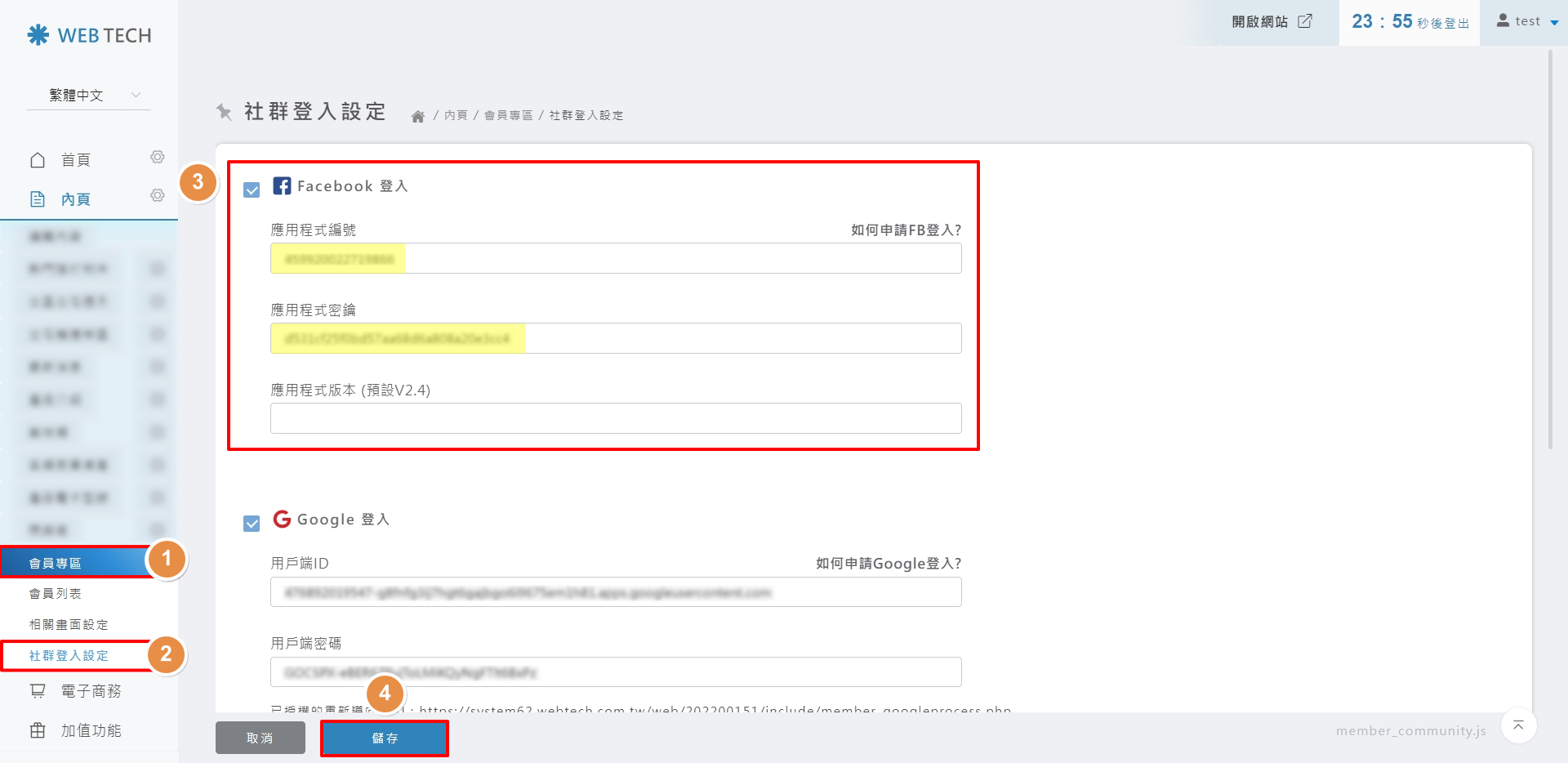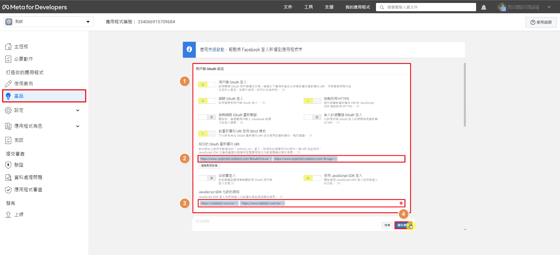 STEP 13:將「應用程式編號」及「應用程式密鑰」,貼至米落後台>下方位置進行串接,完成後點擊「儲存」!