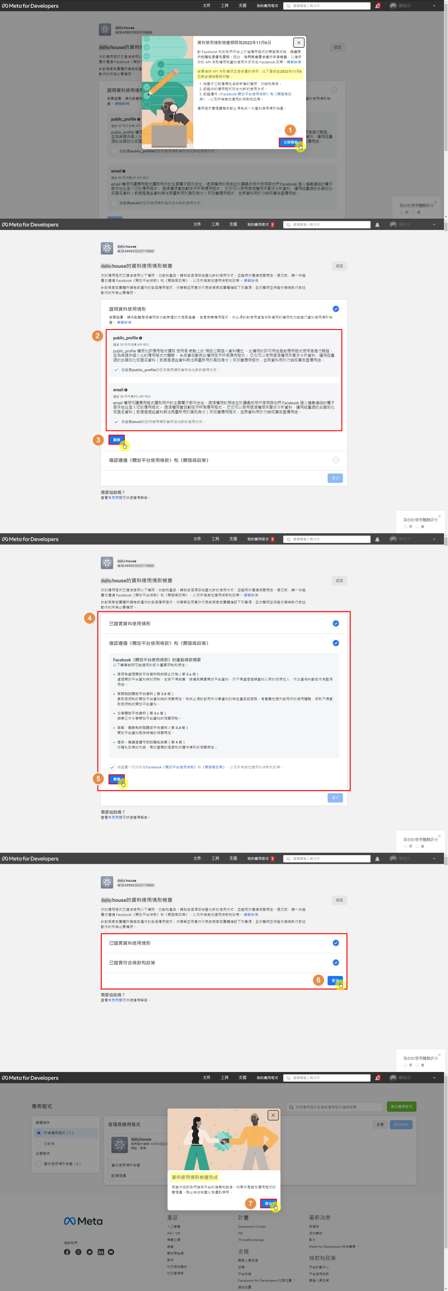※ 請注意:串接完成後,請務必留意您的『Facebook登入應用程式權限』、『使用情況』,Facebook 會不定期發出通知、資料審核的訊息,請於期限內回覆Facebook,以免應用程式遭Facebook 停用。(可滑至最底部確認資訊、或參考「頁籤」教學說明,進行檢查與完成認證)