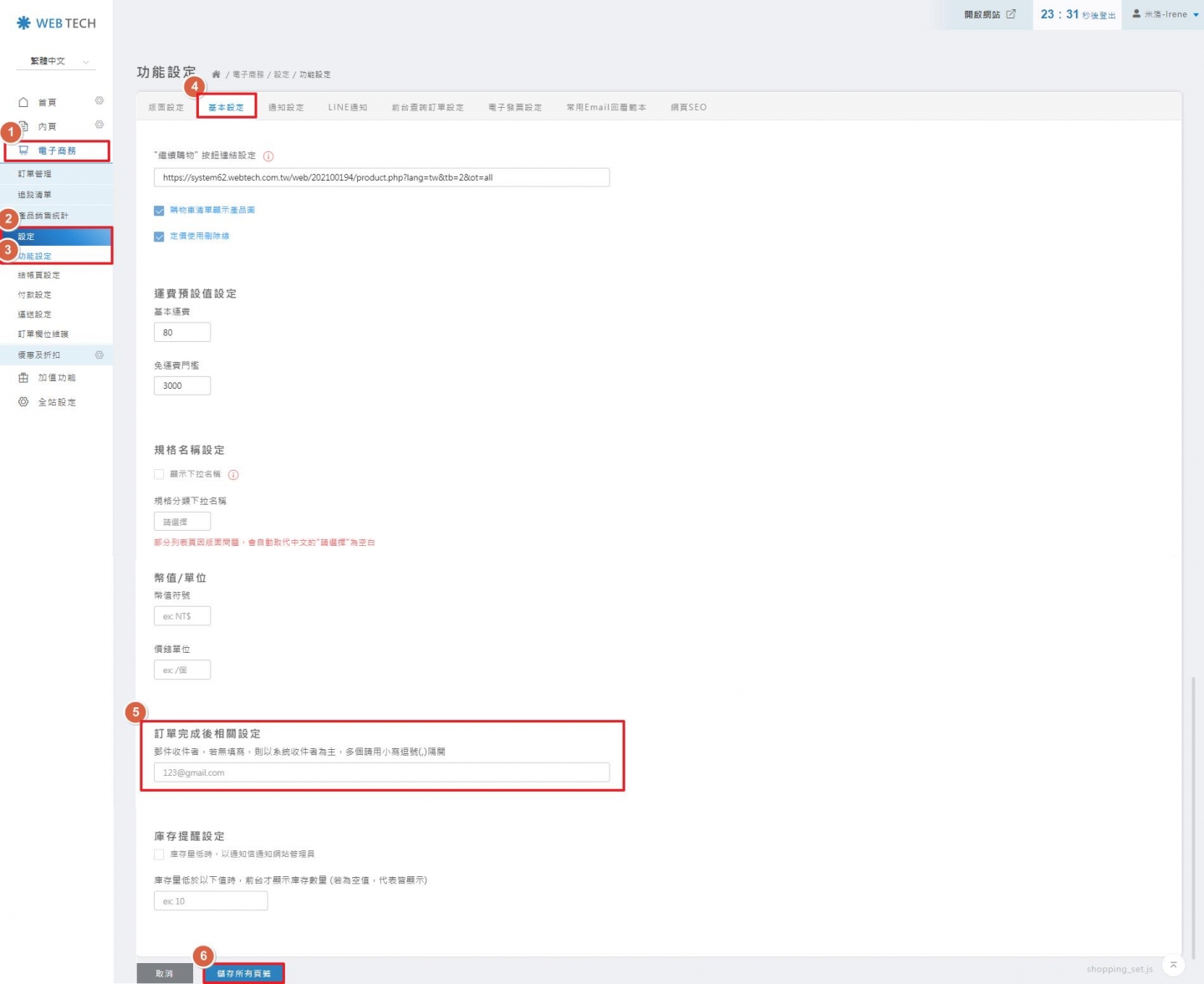 點擊電子商務>設定>功能設定>基本設定頁籤