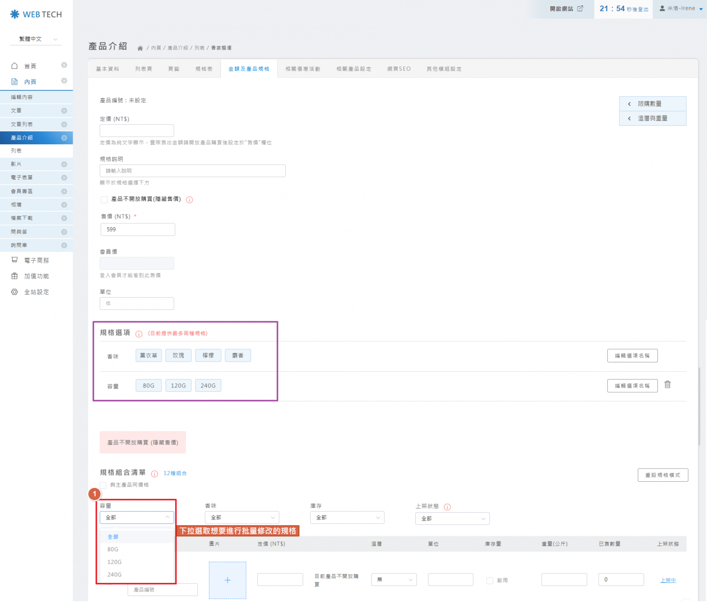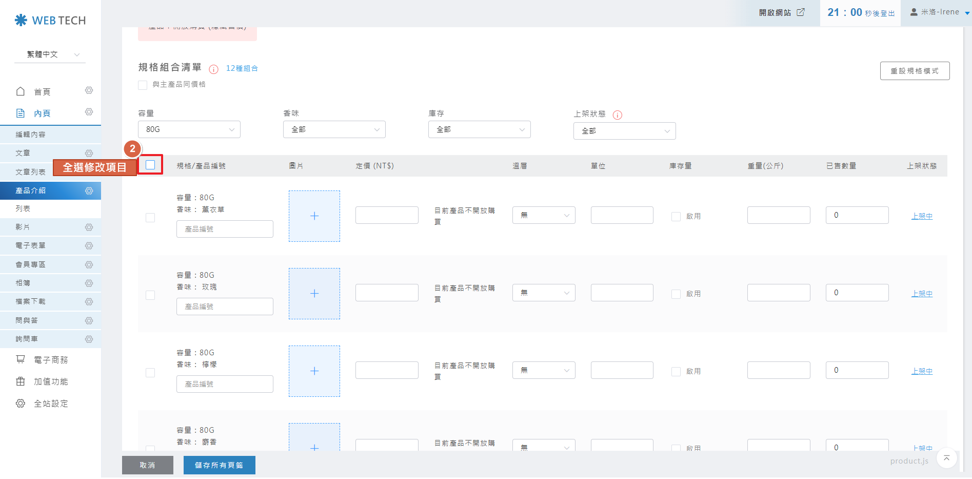 當您的產品有多種規格時,此功能可免去一個一個修改的困擾,可進行批量修改,那就一起來看看如何設定吧!
