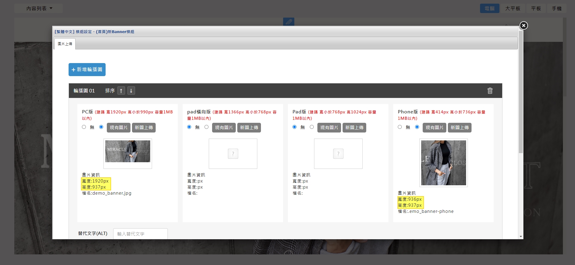 • 點選首頁編輯畫面中,Banner區塊圖示