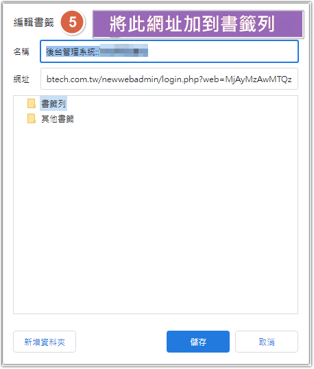 Step5.將原先轉址後的網址改成正確的正式登入入徑,並點選儲存即可: