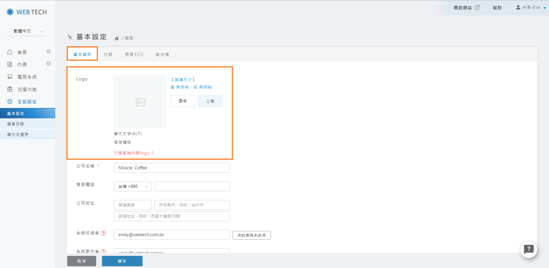 這裡要特別與大家說明,此區塊並非設定網站前台,公司相關資訊露出的位置,