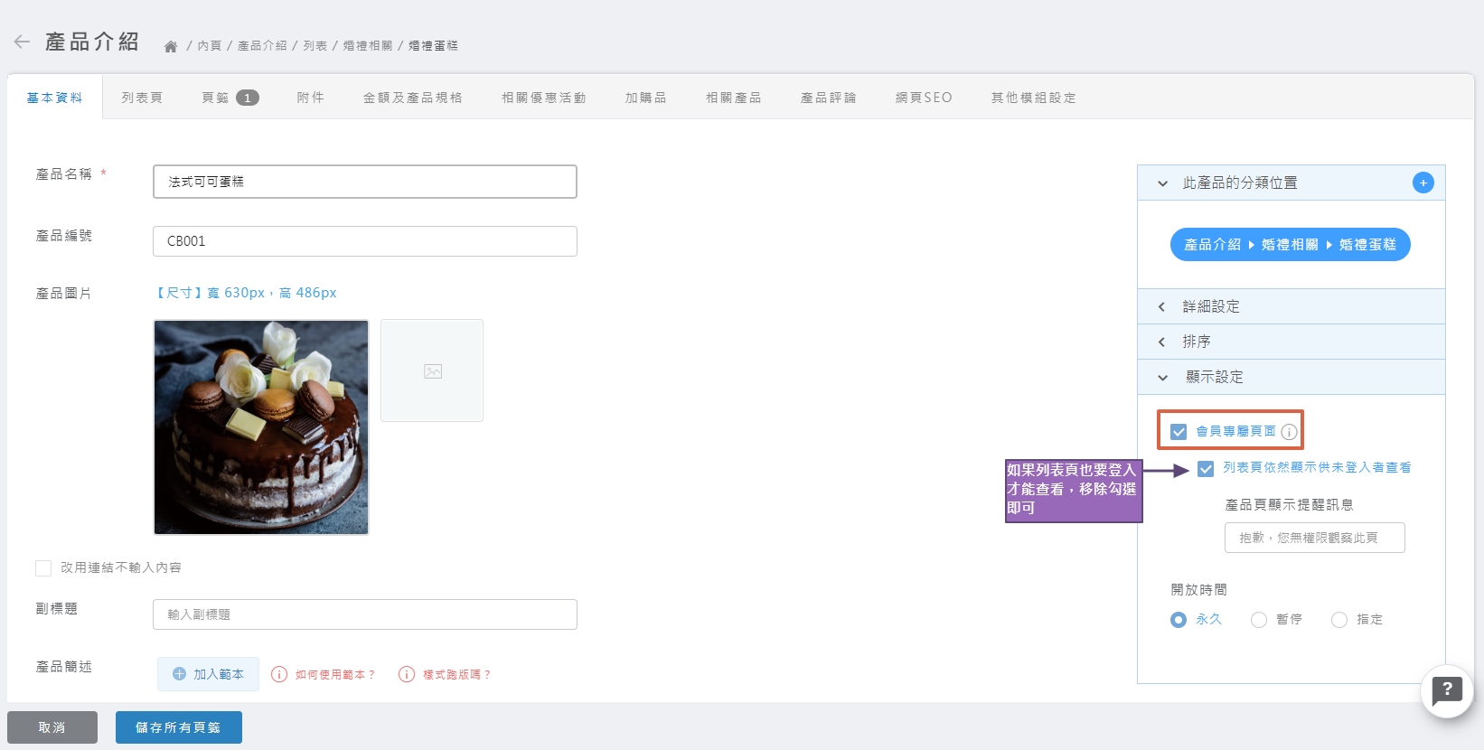 ※如果連列表頁也要對非會員隱藏,則取消「列表頁依然顯示供未登入者查看」即可。