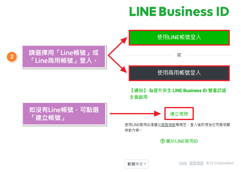 ※「使用LINE帳號登入」與「使用商用帳號登入」有什麼差別呢?