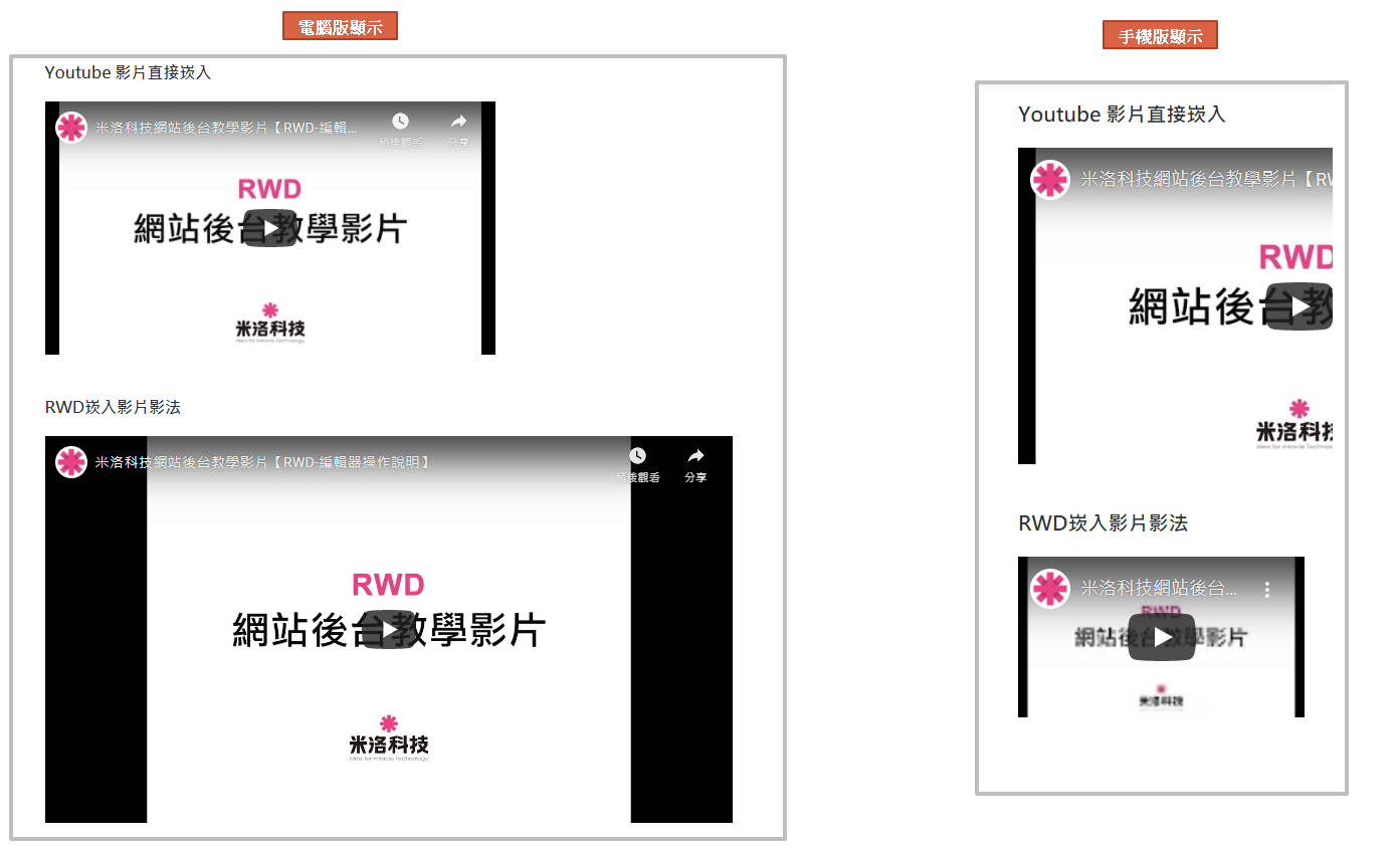 網站前台顯示的Youtube影片呈現方式不同,如下圖: