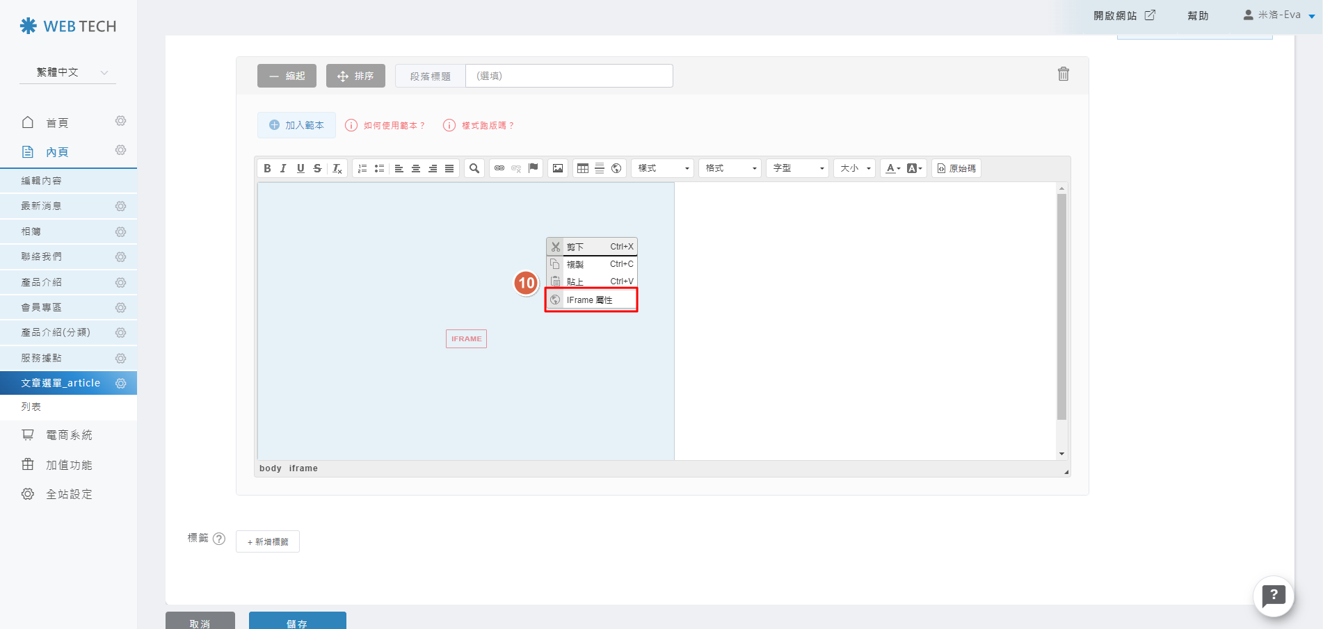 將滑鼠移到IFRAME的區塊,點擊滑鼠右鍵。