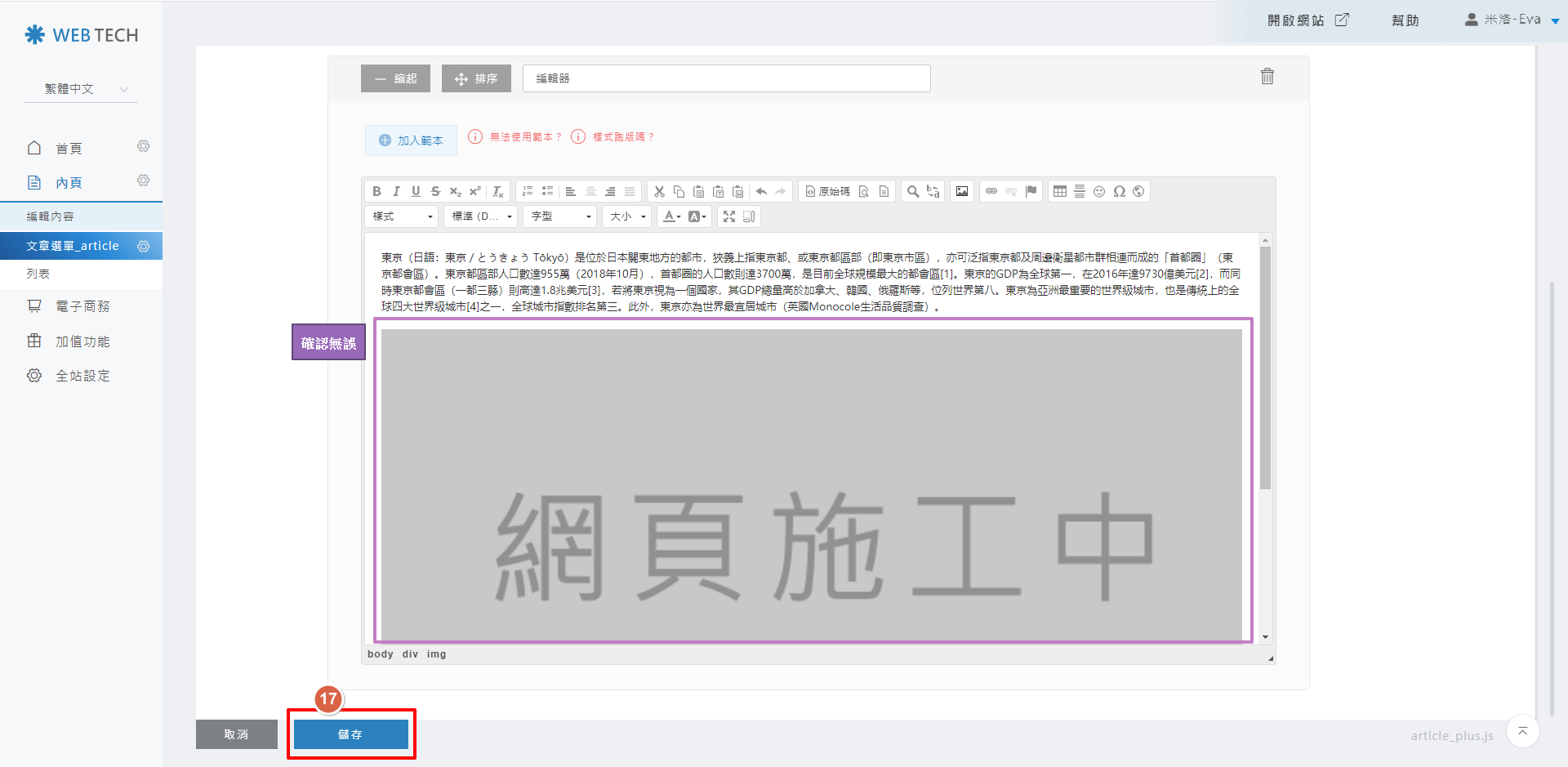 返回到後台編輯頁面後,按下「儲存」,恭喜你! 你已經完成圖片超連結的設定囉!