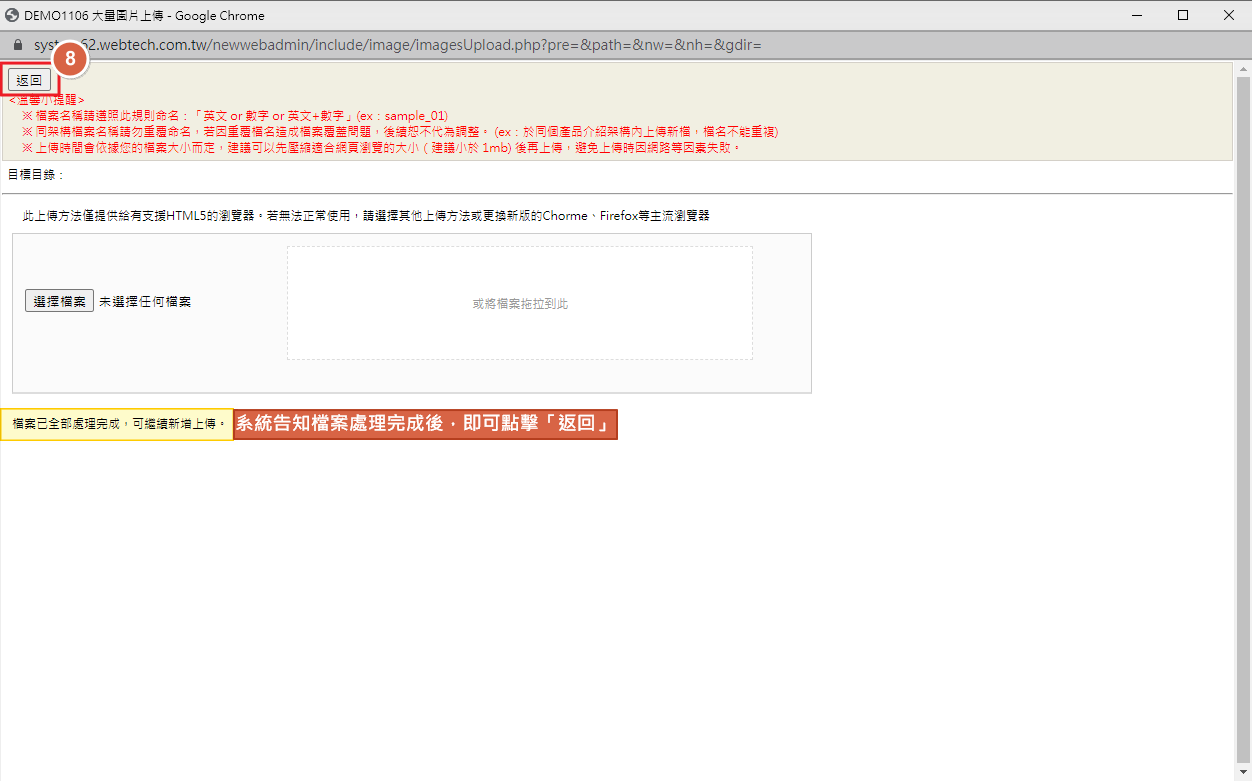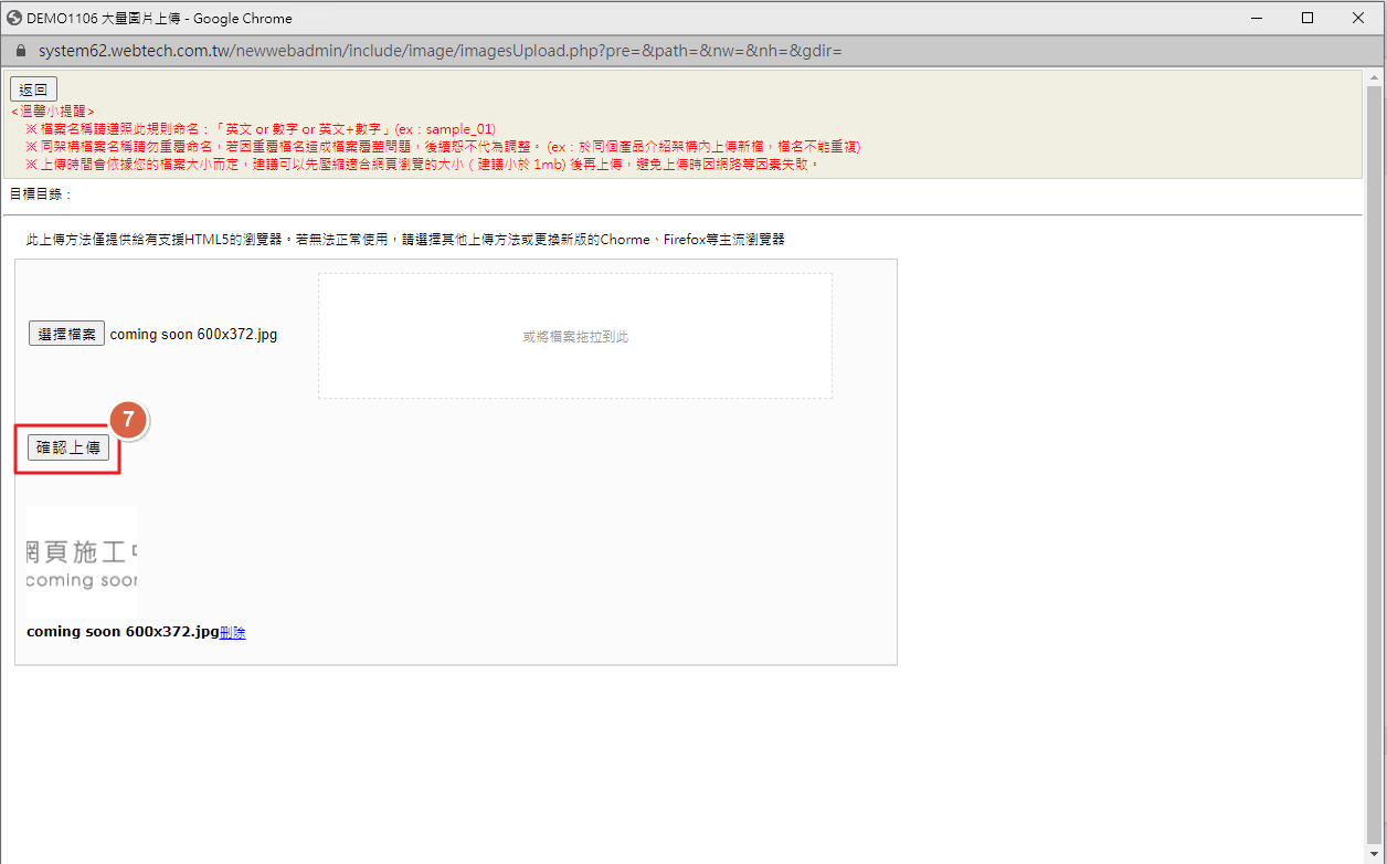 請先點擊方才上傳的圖片,再點擊「選擇」的按鈕。