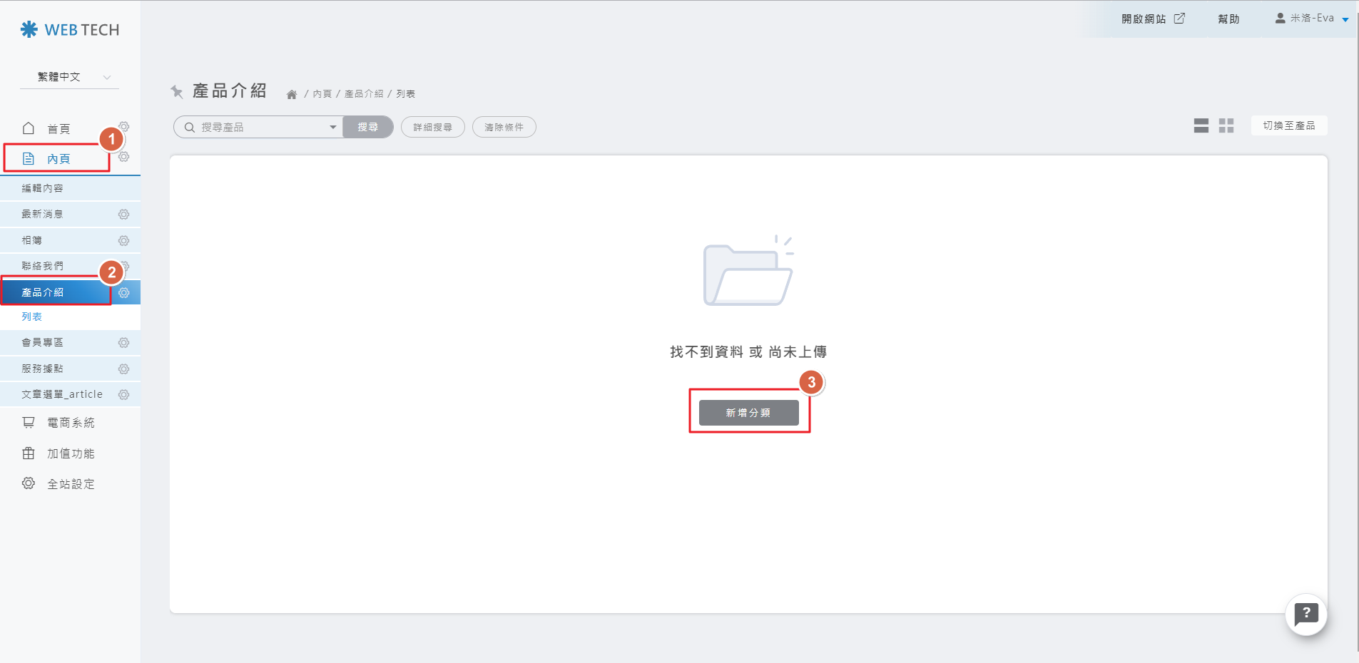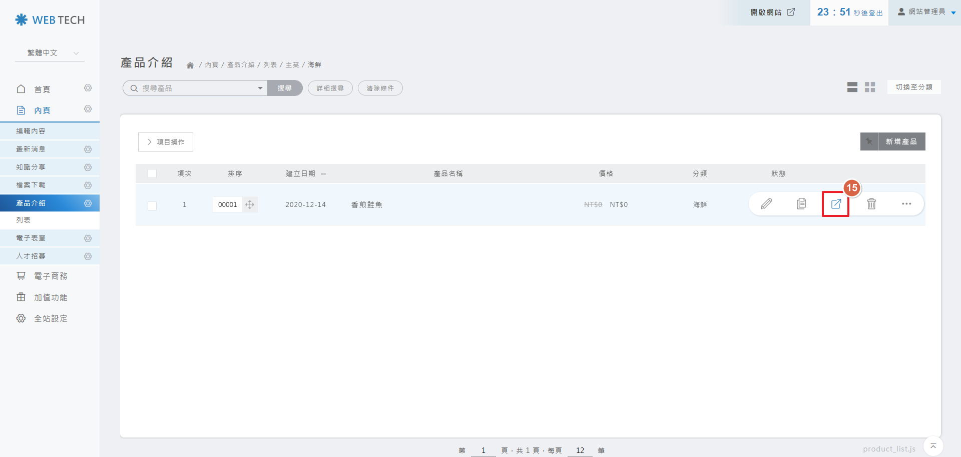 進到資料目錄裡面之後,請點擊「新增產品」的按鈕