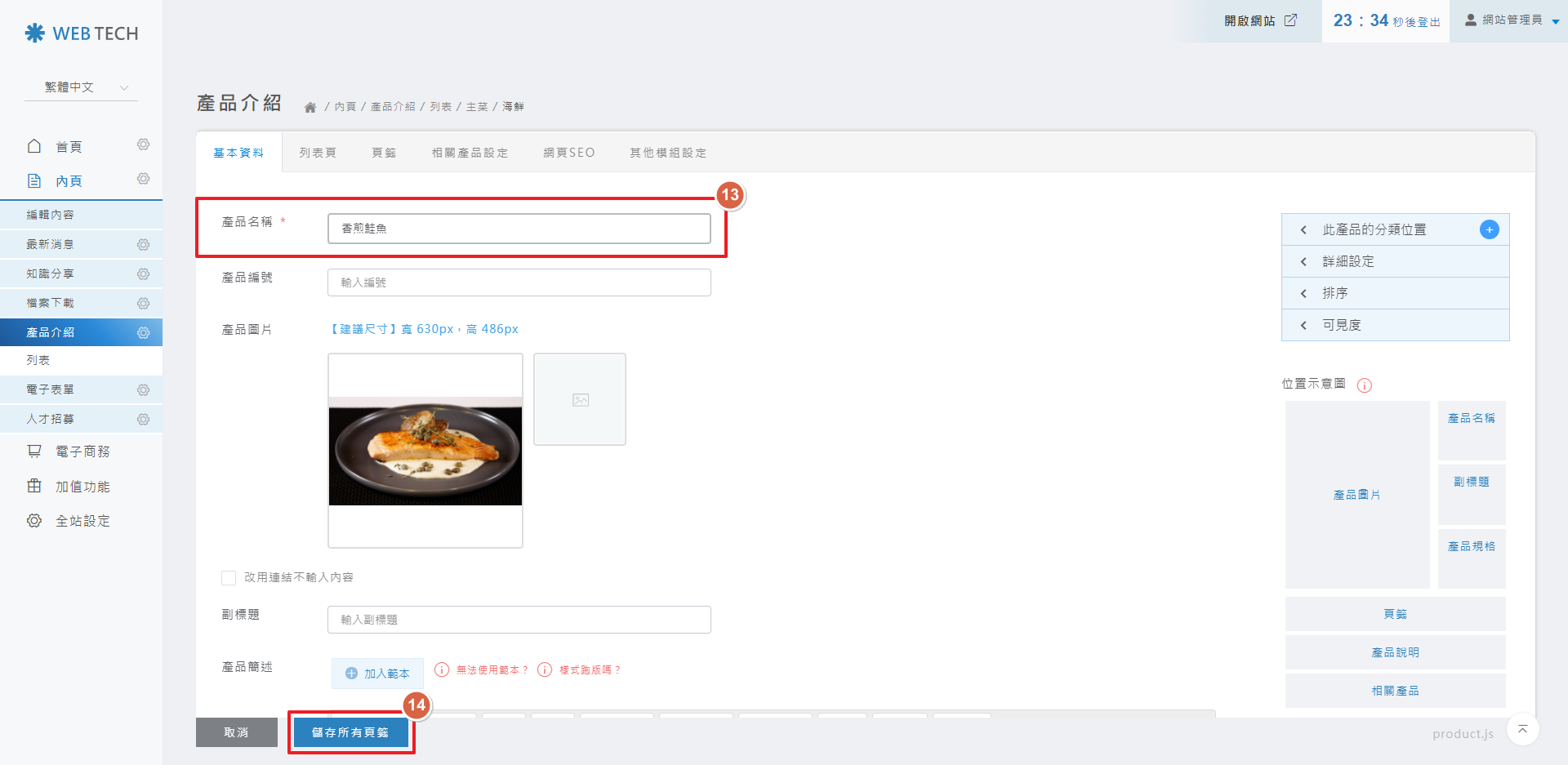 請輸入產品名稱、上傳產品圖片等作業,存檔即可完成新增產品囉!!