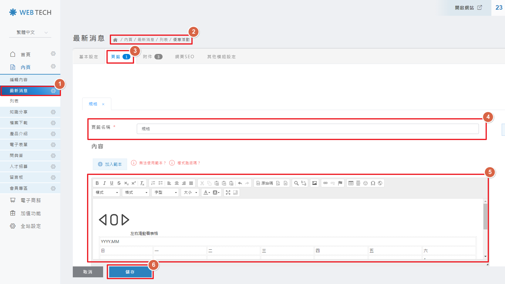 備註:如 貴公司後台,選單【產品】和【文章】頁面無[頁籤]